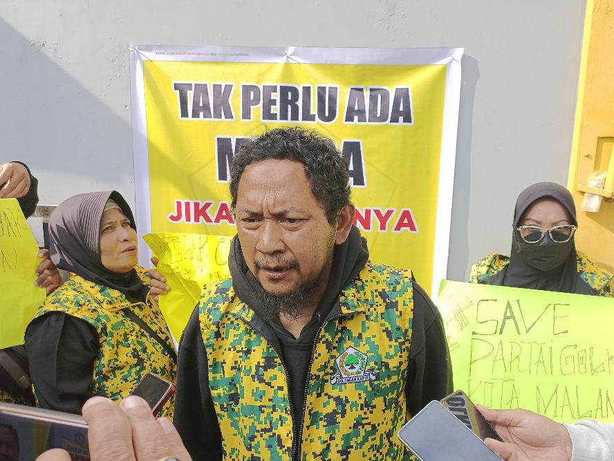 Politikamalang – Proses pendaftaran bakal calon Ketua DPD Partai Golkar Kota Malang diwarnai aksi protes dari sejumlah kader. Mereka membentangkan sekaligus memasang beberapa poster bernada protes di Kantor DPD Golkar Kota Malang, Sabtu (13/12/2025).